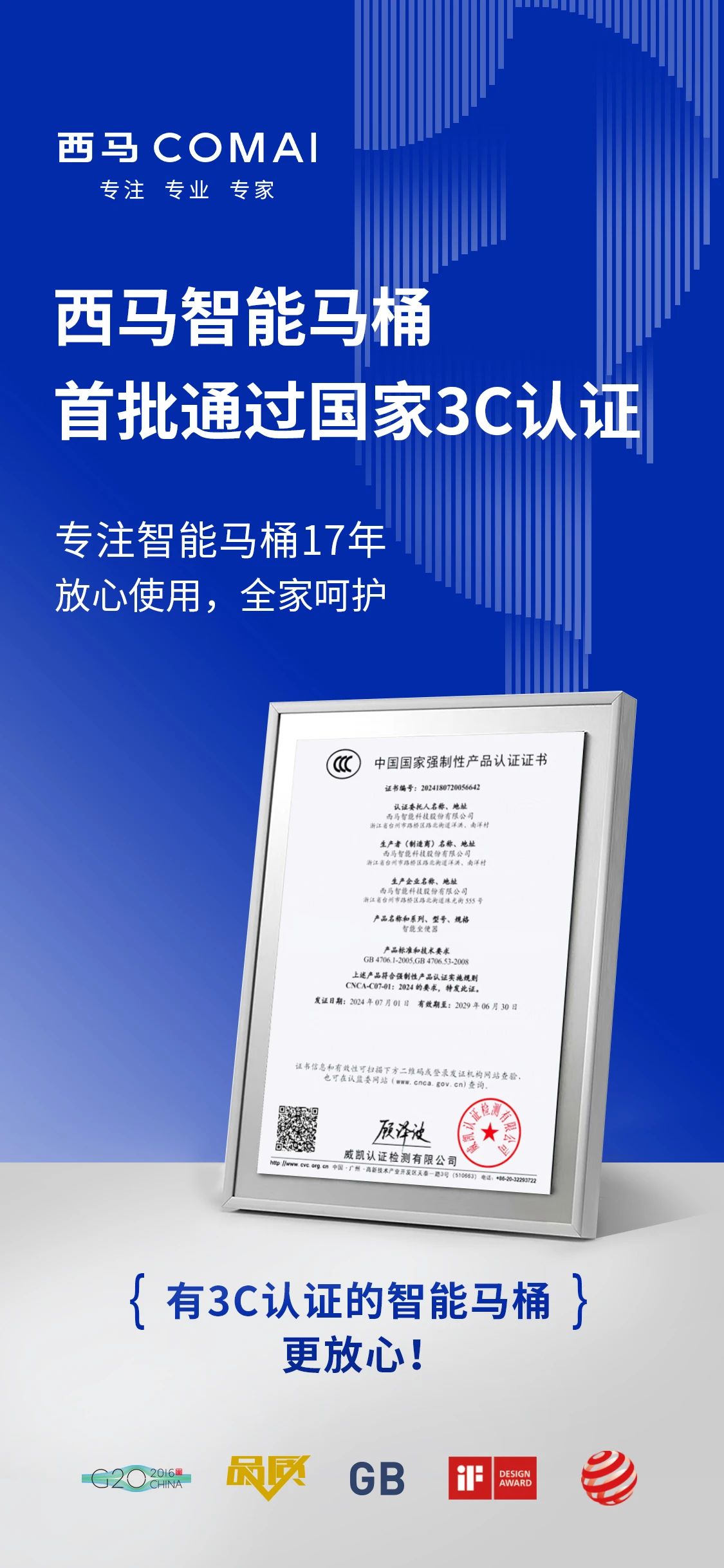 西馬智能馬桶首批通過國家3C認(rèn)證